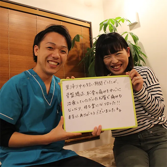 施術のおかげで体調の戻りも良く、また施術後も姿勢に気をつけようと意識できました。
